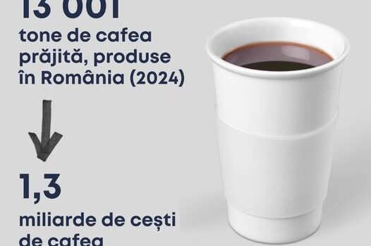 #ȘtiaiCă… În 2024, în România au fost produse peste 13 001 de tone de cafea prăjită, conform Eurostat . Te-ai întrebat cât înseamnă asta în cești de cafea? Peste 1,3 miliarde (a câte 10 g de cafea fiecare).