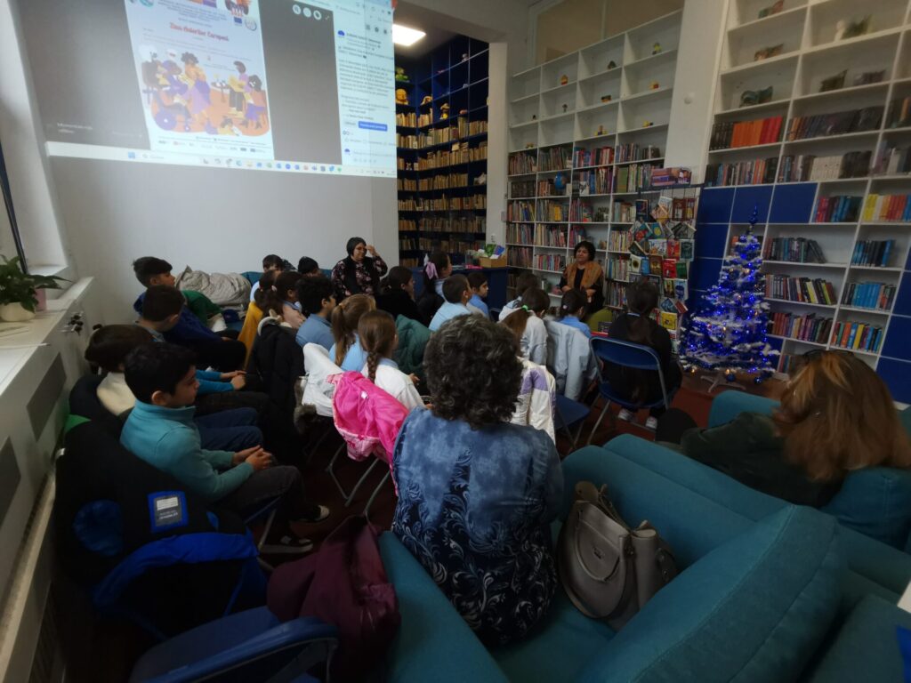 Momentul central al evenimentului a fost întâlnirea cu scriitoarea Florina Carvaci, membră a Uniunii Scriitorilor din România, care i-a purtat pe copii într-o incursiune fascinantă prin universul a doi autori europeni. Prin poveștile, explicațiile și modul cald de a se adresa copiilor, cei mici au descoperit cum literatura poate uni culturi și cum scriitorii europeni îmbogățesc patrimoniul cultural al continentului. Autoarea i-a încântat recitând atât creații proprii, cât și poezii pentru copii, fermecându-i prin sensibilitate și expresivitate. ![]()