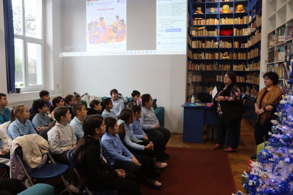 Elevii au vizitat expoziția de carte „Europa pe înțelesul tuturor: Descoperim autori europeni”, un spațiu interactiv în care au descoperit atât autori din diverse țări ale Europei, cât și operele lor – de la povești pentru copii la literatură contemporană. Expoziția i-a familiarizat cu diversitatea culturală europeană, cu modul în care literatura reflectă identitatea fiecărei națiuni și cu importanța lecturii în înțelegerea Europei de astăzi. Prezentarea, realizată de bibliotecar Marinela Rușanu, manager EUROPE DIRECT Teleorman, a transformat acest moment într-o călătorie prin lumea cărților europene, plină de curiozitate și descoperiri. ![]()