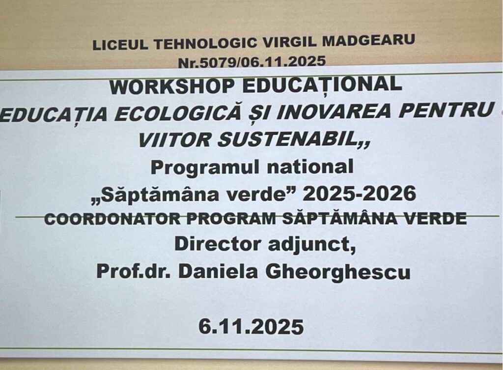 Astăzi, 6 noiembrie 2025, la Liceul Tehnologic „Virgil Madgearu” s-a desfășurat workshopul „Educația ecologică și inovarea pentru un viitor sustenabil”, parte a Programului Național „Săptămâna Verde” 2025–2026.