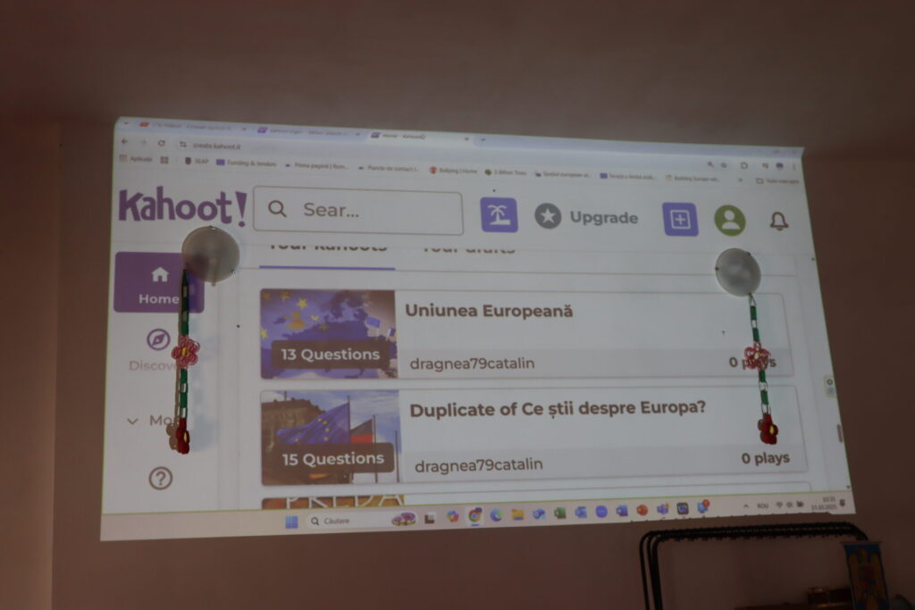 activități interactive pentru elevi, precum quiz-ul Kahoot „Uniunea Europeană” și prezentarea „#ErasmusDays”, realizate de voluntarii noștri – Adelina Maria Oprică și Ionuț Badea;