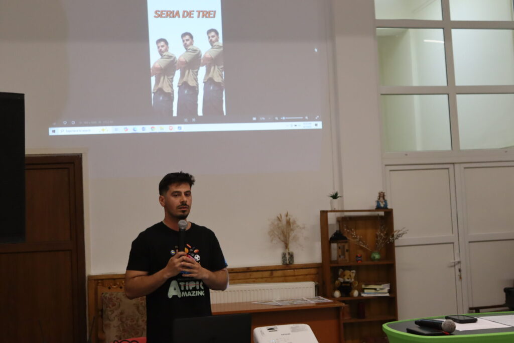 Atelierul a inclus momente de prezentare personală, exerciții creative de scris glume, reflecții asupra a ceea ce nu se vede pe scenă și o sesiune de întrebări și răspunsuri care a încurajat dialogul deschis cu participanții. Mesajul central a fost clar: „Ai voie să greșești. Important e să rămâi autentic!”
